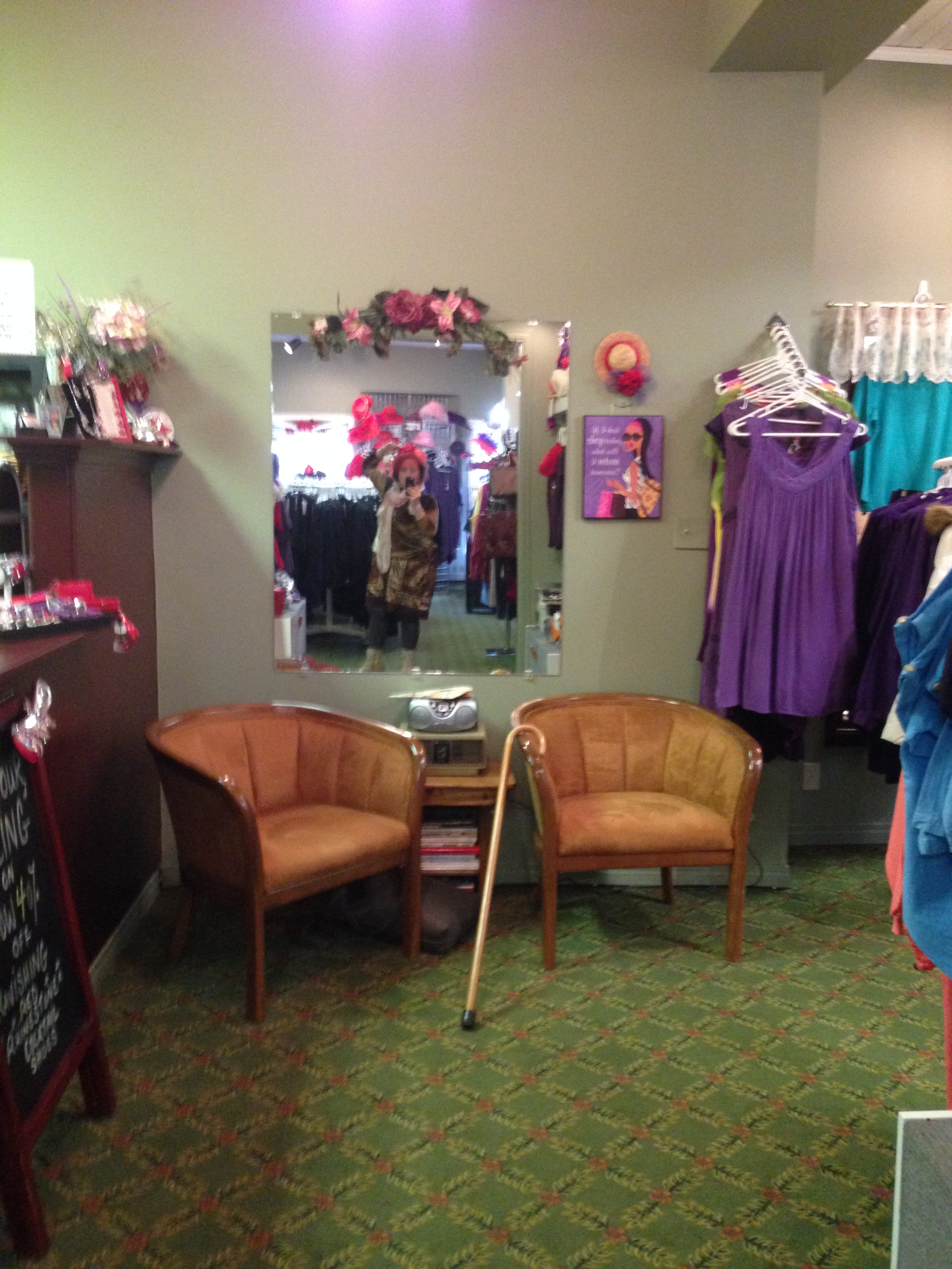 She is a slightly older than me lady, though she probably doesn’t realize it, and has neat grey hair and moves with spry gracefulness. Her store is replete with luxury clothing for affordable money and is located inside one of our heritage buildings, formerly a dance hall and lodgings. As you enter the building through the solid green doors with their engraved glass, it is walking into a museum full of life and vibrancy. Casual Connexions is just to the left, and the lady who owns it is a proud fashion affadicicio and member of the Red Hat Society, which apparently has to do with dressing up!